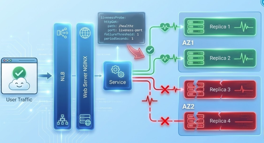 By fine-tuning our LivenessProbe thresholds, we significantly reduced the time to detection. This aggressive health check configuration ensures that during an AZ failure, traffic is immediately diverted away from ‘zombie’ replicas and routed only to healthy nodes, effectively minimizing the impact on services.